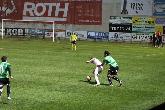 In der 4. Frühjahrsrunde stand das Oststeirer-Derby gegen den FC Gleisdorf 09 auf dem Programm. Die Gleisdorfer, die in den drei bisher absolviererten Frühjahrspartien noch keinen Punkt abgegeben haben, sind nach einem mäßigen Herbstdurchgang schon auf den dritten Tabellenplatz vorgestoßen. Die Gnaser konnten sich in der Vorrunde durch den 3:1-Auswärtserfolg bei den KSV-Amateuren um einen Rang verbessern und nehmen nun den 4. Platz ein. So konnte man sich auf ein spannendes Duell freuen, zumal die Gnaser seit dem Wiederaufstieg in die Landesliga noch kein Match gegen Gleisdorf verloren haben. Eder-Halbedl, der sich in Kapfenberg eine Oberschenkelverletzung zugezogen hatte und Matthias Schadler fehlten bei den Heimischen, bei den Gäste musste der gesperrte Leon Horvat passen. Rund 600 Besucher kamen zum Schlager der 19. Runde ins Gnaser Stadion.