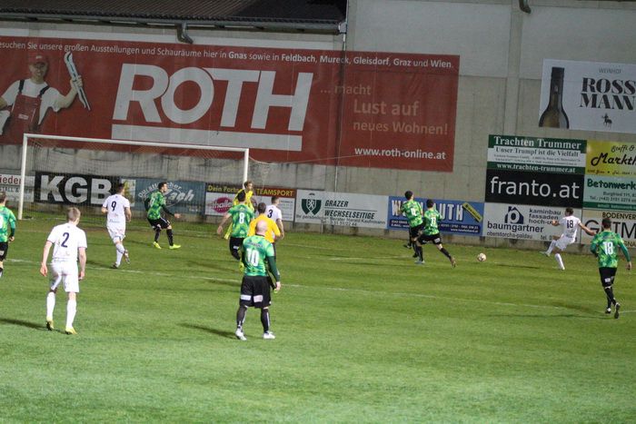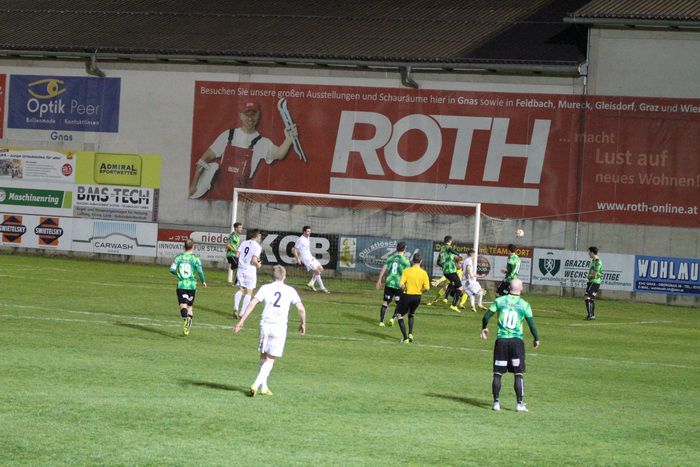 In der 70. Minute übernahm Gnas-Kapitän Christoph Haas nach einem Eckball volley, der Ball zog über die Querlatte hinweg ins Torout. Wenig später brachte Strohmaier, über rechts kommend den Ball zur Mitte, mit vereinten Kräften beförderte die Gleisdorfer Verteidigung den Ball vor Raphael Kniewallner zur Ecke (73.).