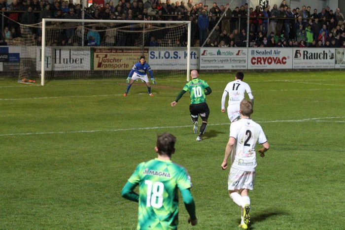 Anibas (nicht am Bild) wollte Torhüter Roth, der weit vor dem Tor stand, mit einem hohen Ball überraschen, der Ball verfehlte das Tor (49.).