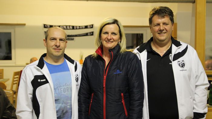 Match- und Matchballsponsor war die Firma Ofenstudio Baumgartner, auf dem Foto die Chefin mit den Gnaser Funktionären Helmut Trummer und Franz Sägner.