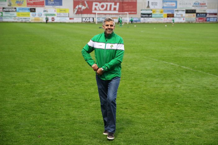 Ein sichtlich gut gelaunter SC Liezen-Trainer Richard Niederbacher vor dem Spiel.