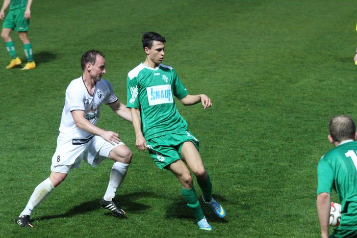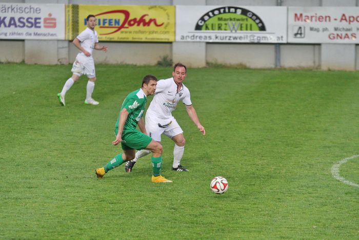 Alfred Geigl (rechts) stand erstmals nach seiner langen verletzungsbedingten Pause wieder in der Startelf. Daneben Liezen-Goalgetter Marijan Blazevic.