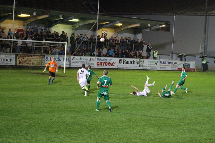 ...Wohlmuth schießt beim Freistoß den eigenen Mann (Klenner) an....