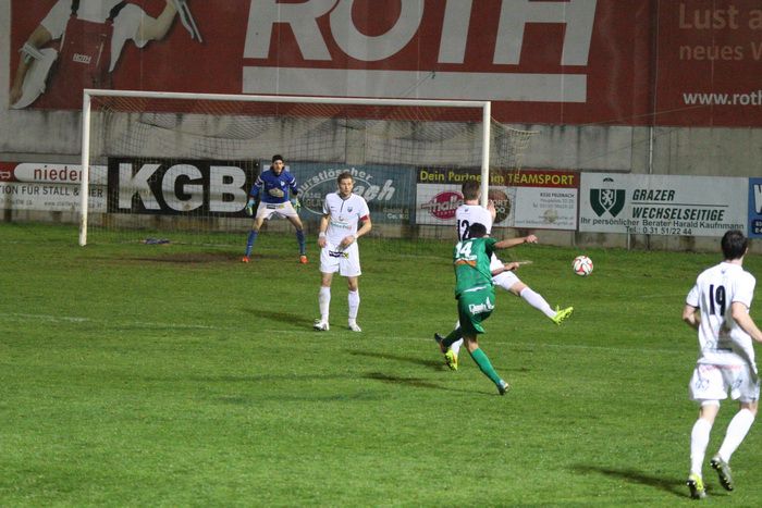 Erstmals gefährlich wurden die Gäste aus dem Ennstal in der 23. Minute. Nach einem schönen Angriff versuchte Habeler nach Zuspiel von Penz den Abschluss, Torhüter Roth beförderte das Leder mit Reflex über die Querlatte.