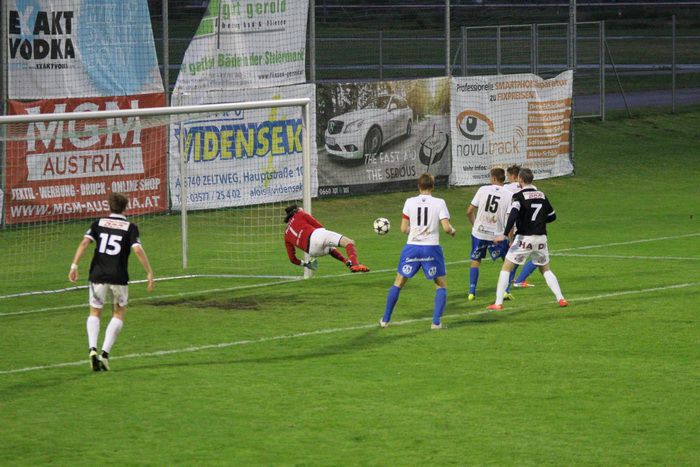 Doppelchance für Zeltweg in der 45. Minute. Zuerst kann Roth abwehren...