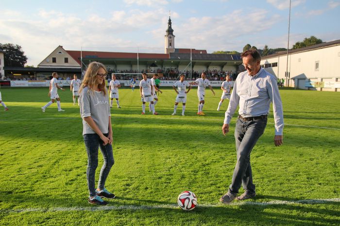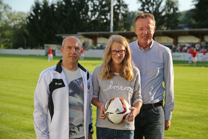 Match- und Matchballsponsor war die Firma MEZ, rechts Chef Ewald Roth, daneben Tochter Paula und Gnas-Funktionär Helmut Trummer.