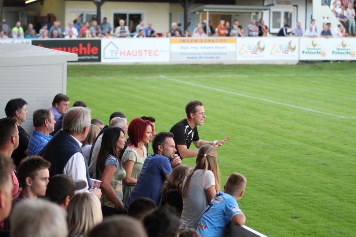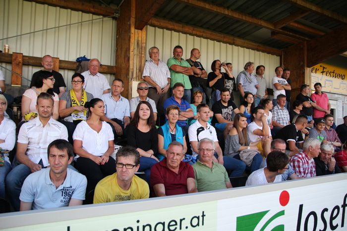 Ein kurzer Blick auf die Sitzplatztribüne. Unter den Zusehern auch der verletzte Gnas-Verteidiger Stefan Klenner.