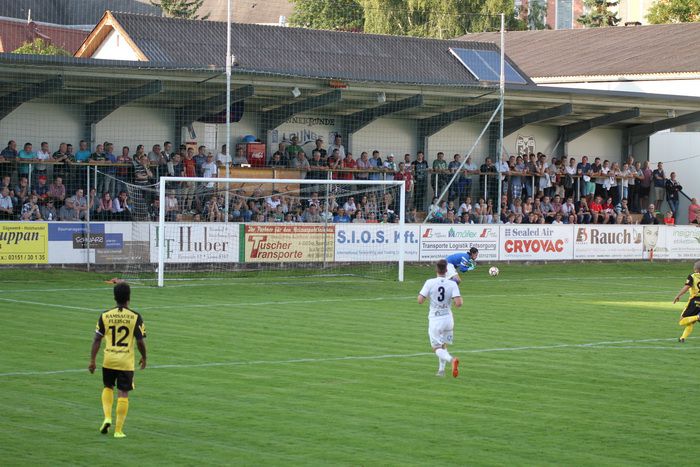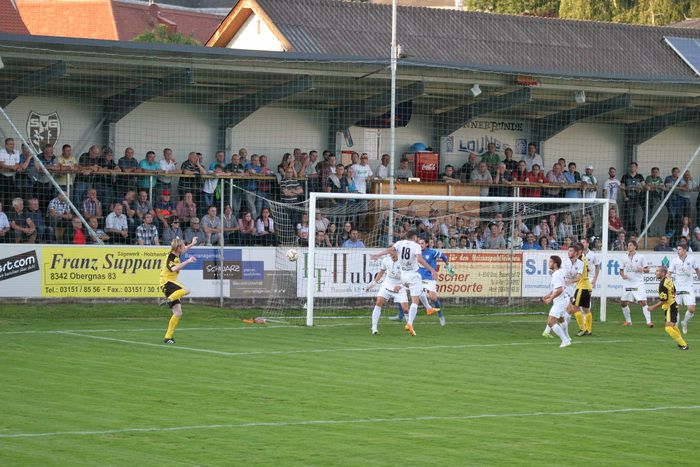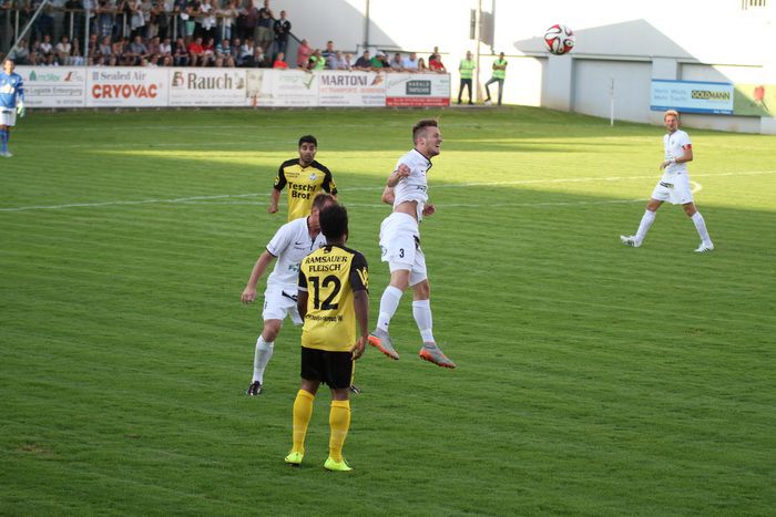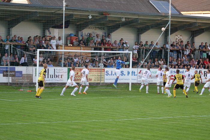Einen Freistoßball von Heiko Wohlmuth köpfelt Daniel Hofer gefährlich am eigenen Tor vorbei (19.).