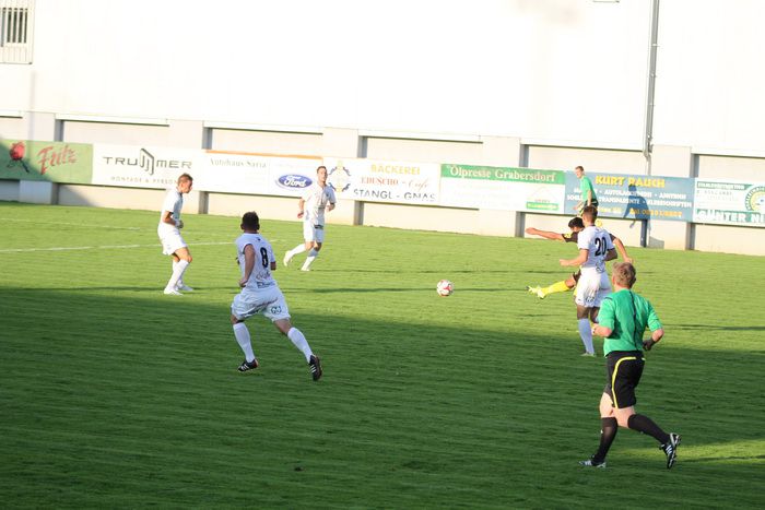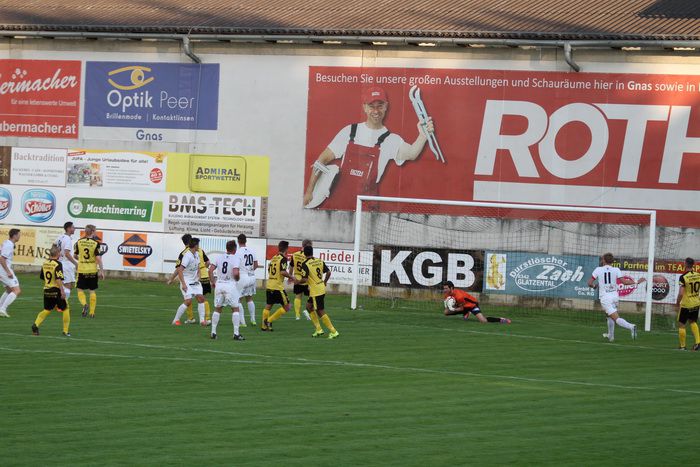 In der 37. Minute ging der Vizemeister aus Hlg. Kreuz mit 1:0 in Führung. Mohsenzada holte auf der rechten Seite einen Eckball heraus, Martin Six brachte den Ball in den Strafraum, der am linken Fünfereck völlig freistehende Pascal Pieber zog gleich ab, der Abwehrversuch des Gnaser Torhüters misslang, das Leder landete im linken Eck.