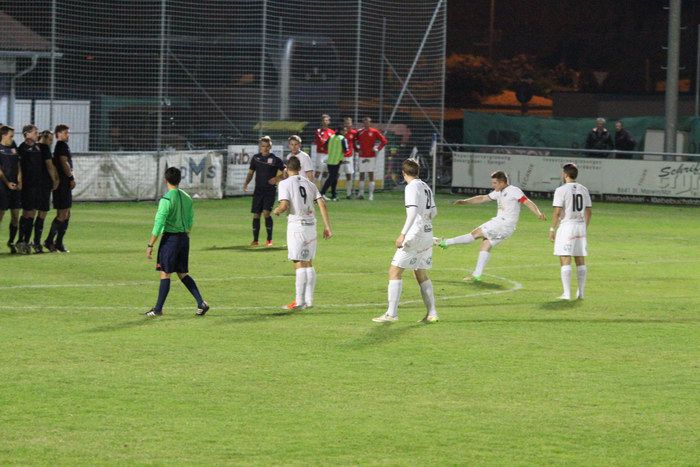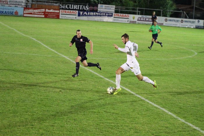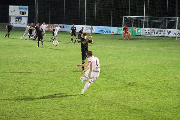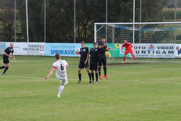 Bereits in der 4. Minute haben die Heimischen Glück, denn ein 20 m-Freistoß von Gnas-Kapitän Matthias Schadler....