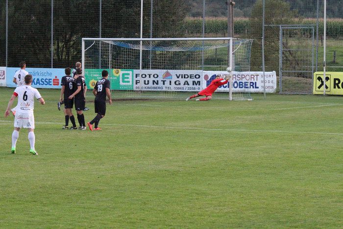 .....denn in der 76. Minute zeigte der Unparteiische nach einem Kopfballduell zwischen Obendrauf und Trippl im Strafraum auf den Elferpunkt und dem Gnaser Verteidiger die Ampelkarte. Den Strafstoß verwandelte Kindberg-Mürzhofen-Kapitän Christoph Trippl sicher zum 1:2.