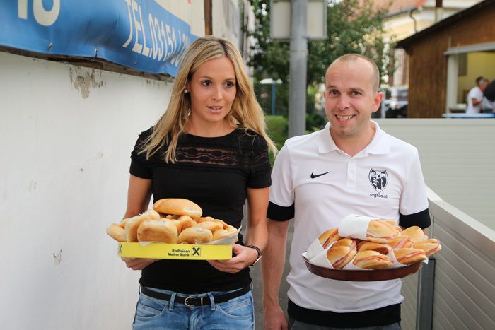 SVG-Schriftführerin Sandra Trummer und SVG-Kassier Bernhard Fritz mit der Jause unterwegs.
