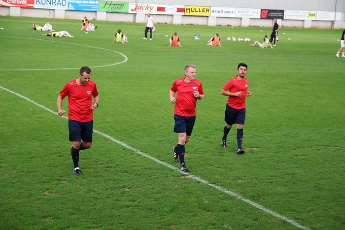 Das Schiriteam (von links), Ass. Hartner, SR Spörk und Ass. Cetin.
