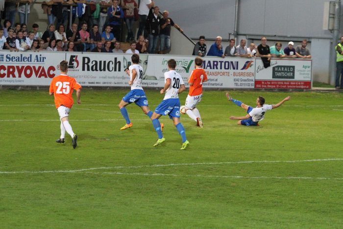 Die erste nennenswerte Möglichkeit für die Gäste gab es in der 32. Minute. Ein 20 m-Freistoß von Marc Klicnik zog nur knapp über die Querlatte des Gnaser Tores.
