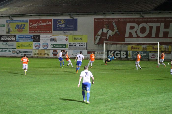 Nach 23 Minuten fiel in diesem Match bereits die Vorentscheidung. Heiko Wohlmuth schickte Stefan Strohmaier mit einem Steilpass auf die Reise, Strohmaier lief allein auf das Tor von Daniel Pripfl und in Höhe der Strafraumgrenze versuchte der Gnaser Stürmer den Abschluss, Pripfl konnte per Fußabwehr vorerst das Ärgste verhindern, doch Raphael Kniewallner war zur Stelle und staubte zum 3:0 ab.