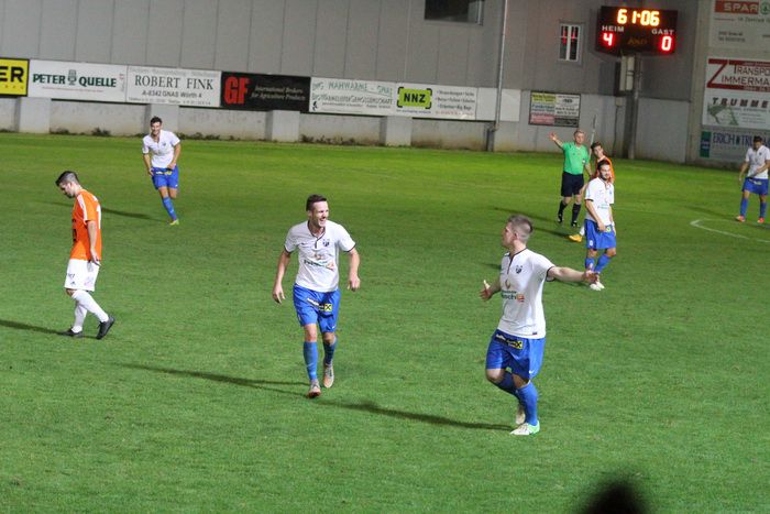 Zwei Minuten später (10.) konnten die Gnaser erstmals an diesem Abend jubeln. Raphael Kniewallner versuchte mit dem linken Fuß aus rund 20 m den Abschluss und der etwas abgefälschte Ball landete zur Freude der Heimischen zum 1:0 im linken Eck. Keine Chance für den Zeltweger Torhüter Daniel Pripfl.