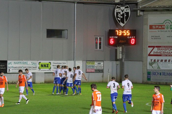 Das 6:0 für die starken Gastgeber fiel in der 74. Minute. Opferkuch setzte Stefan Strohmaier mit einem Lochpass ideal ein und der Gnaser Stürmer schob den Ball am linken Fünfereck an Pripfl vorbei ins lange Eck.