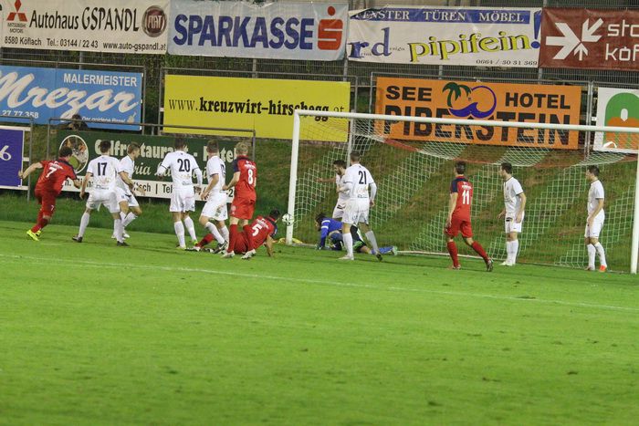 In der 36. Minute fiel der verdiente Führungstreffer der Gastgeber. Alexander Fuchshofer brachte den Ball von der linken Seite, nahe der Cornerlinie zur Mitte, Maritschnegg kam ans Leder, dessen Schuss vom Sechzehner konnte Roth vorerst mit Reflex abwehren, gegen den Nachschuss von Daniel Brauneis zum 1:0 war der Gnaser Goalie aber machtlos.