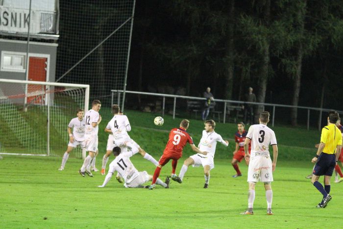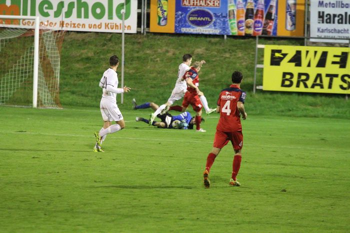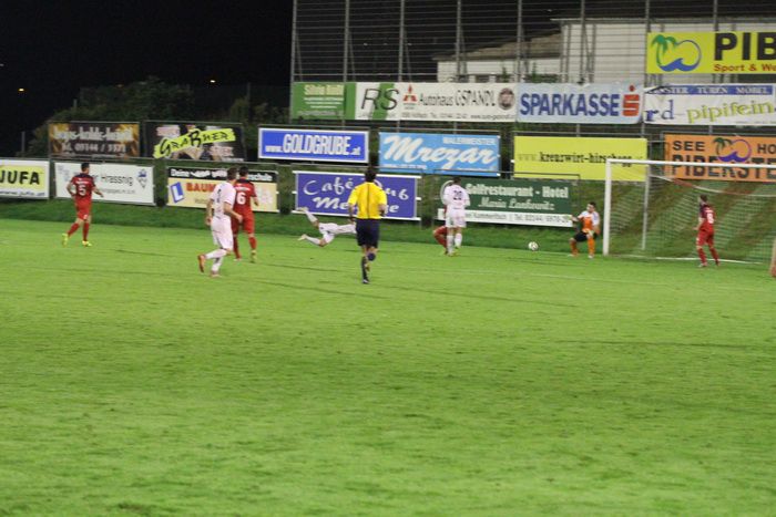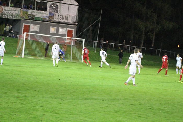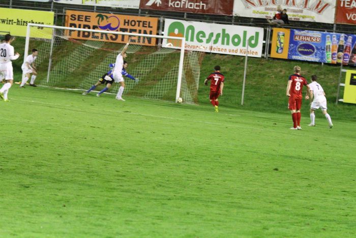 ....Peter Kozissnik (Nr. 13) kann in den Schuss von Kniewallner grätschen, der Ball landet hinter dem Netz. Kniewallner und Wohlmuth können es nicht fassen (48.).