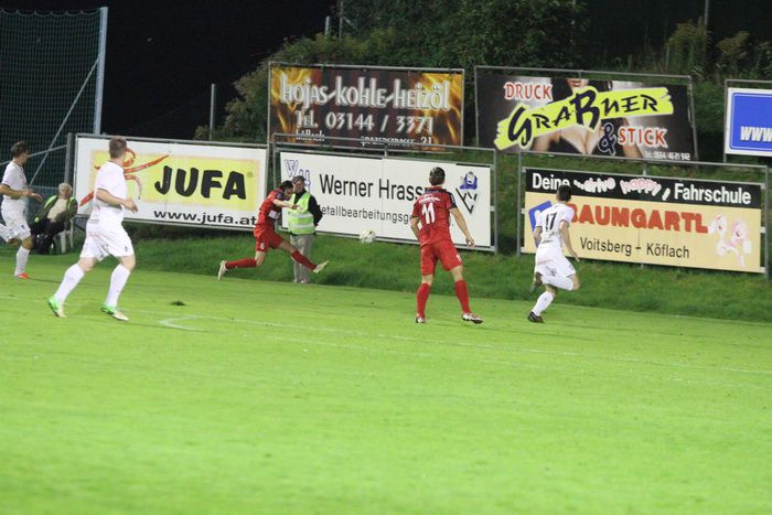 Wie ausgewechselt kamen die Gnaser aus der Kabine und versuchten nun mit viel Druck das Spiel zu drehen. Eine Riesenchance vergab Raphael Kniewallner in der 48. Minute. Wohlmut setzte Kniewallner ein, der überhob Torhüter Pösendorfer und plötzlich stand Kniewallner vor dem leeren Tor. Er zögerte aber mit dem Abschluss und im letzten Augenblick konnte Kozissnik bei der Schussabgabe noch hineingrätschen und so wurde der Ball zur Ecke abgefälscht.