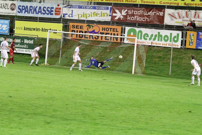 ...der Ball ist im Netz, Torhüter Rene Pösendorfer hat das Nachsehen...