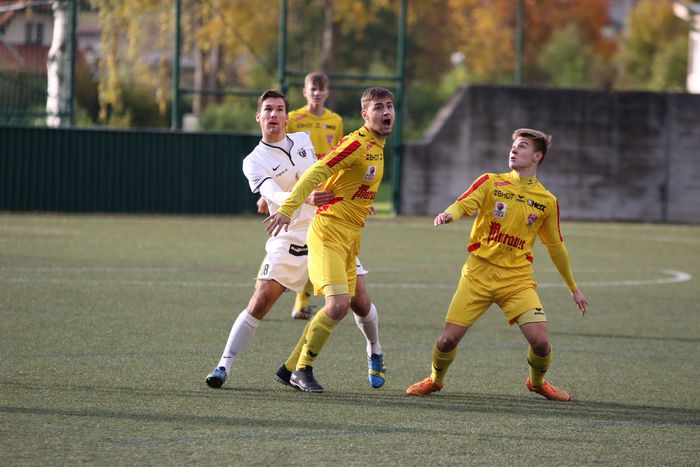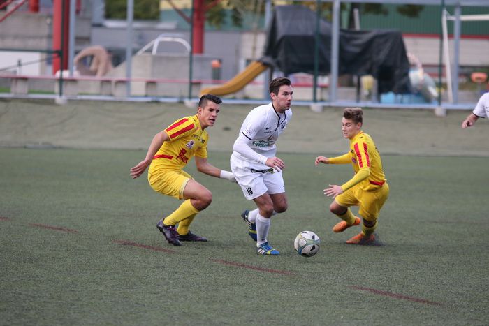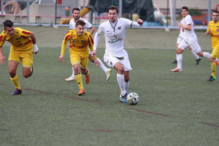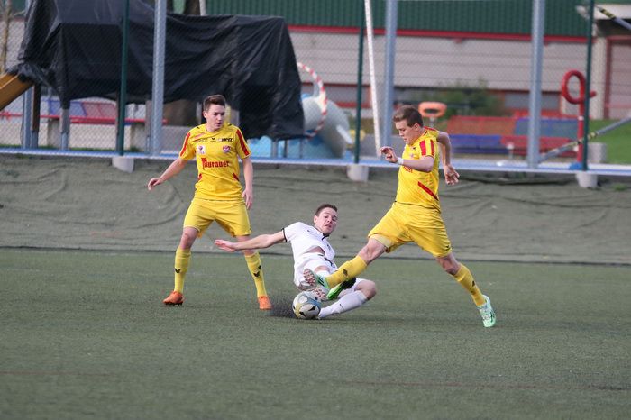 Gnas-Stürmer Stefan Strohmaier (links) gegen zwei Gegner.