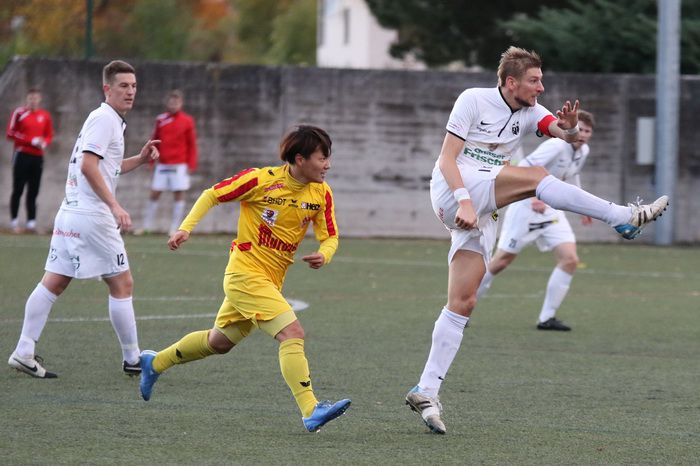 Kein Durchkommen für Sunbim Kim (Nr.10) bei der Gnaser Abwehr...