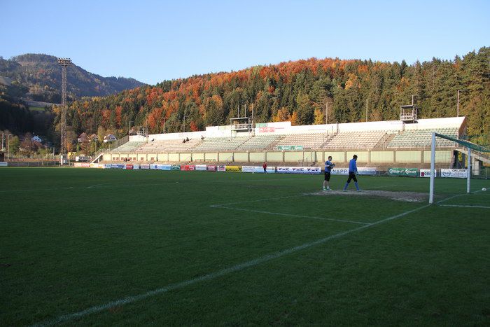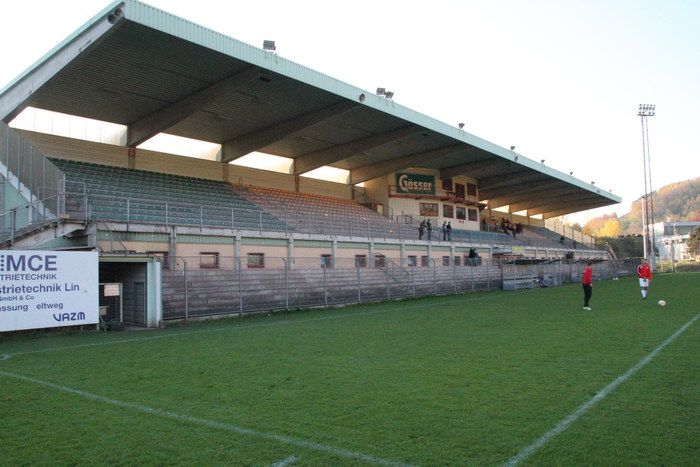 Das Stadion in Leoben-Donawitz, die Westtribüne...