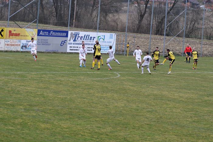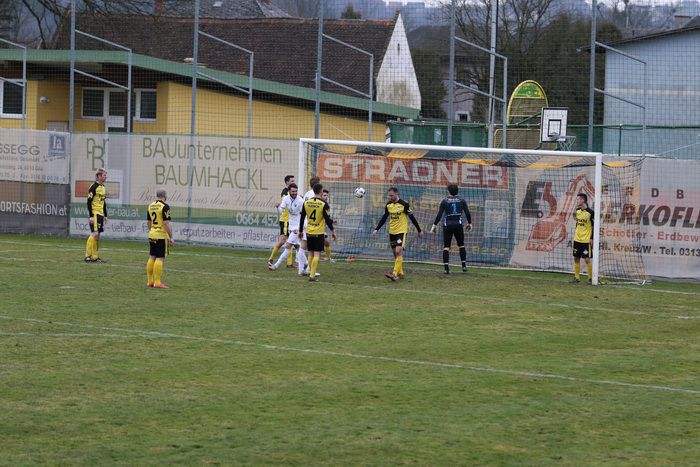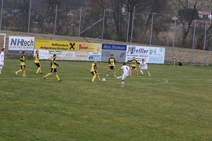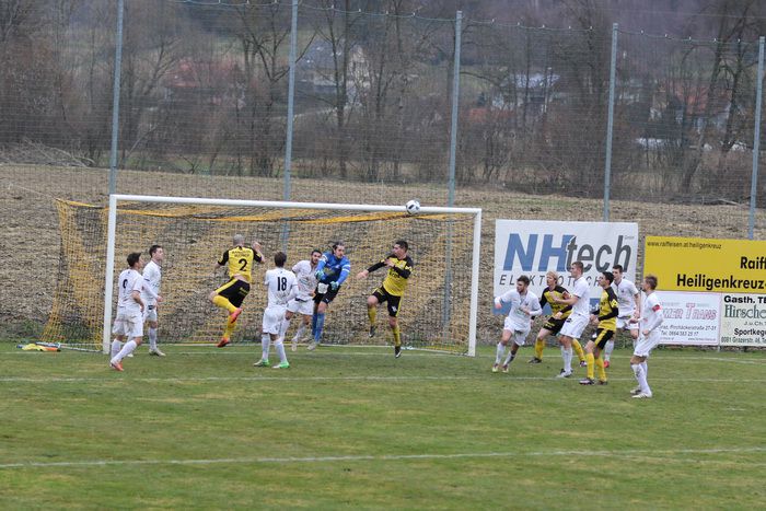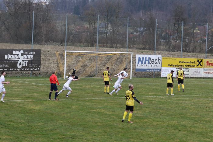 Erstmals starteten die Gnaser als Tabellenführer der Steirischen Landesliga in die Frühjahrssaison. Wie es dazu kam, ist hinlänglich bekannt. Und gleich im ersten Spiel ging es nach Hlg. Kreuz/W, zu unserem Angstgegner. In fünf Spielen gegeneinander blieb Hlg. Kreuz drei Mal siegreich, zwei Spiele endeten Remis. Im Hinspiel gab es ein 2:0 für Hlg.Kreuz/W. Nicht mit der kompletten Mannschaft konnten die Gnaser zum ersten Frühjahrsspiel antreten. Denn mit den Langzeit-Verletzten Klenner, Obendrauf und Eder-Halbedl fehlen derzeit drei Stammspieler, die auch noch einige Zeit nicht zur Verfügung stehen werden. Während es in der Winterpause in Gnas keine Kaderveränderungen gab, verstärkten sich die Gastgeber mit drei Neuen, Tisaj, Udvardi und Vucic.