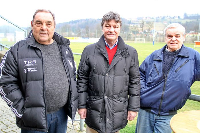 Der neue Obmann des TUS Hlg. Kreuz/W, Gerhard Kölldorfer (mitte) mit 2 Gnaser Fans.