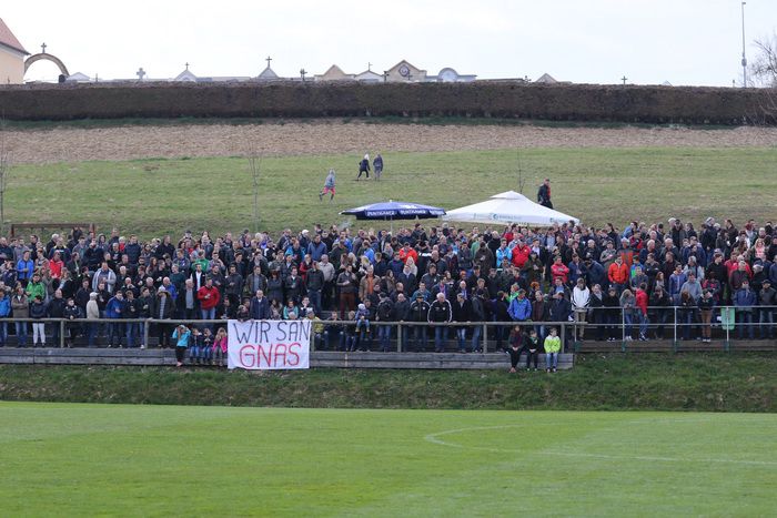 Das Spiel war von enormen Einsatz auf beiden Seiten geprägt. Bei einem Kopfball von Marko Guja hatte Gnas-Keeper Roth keine Probleme (29.). Auf der anderen Seite passte Wohlmuth von der rechten Seite scharf zur Mitte, Strohmaier und Opferkuch kamen nicht ans Leder (38.).