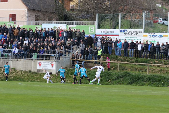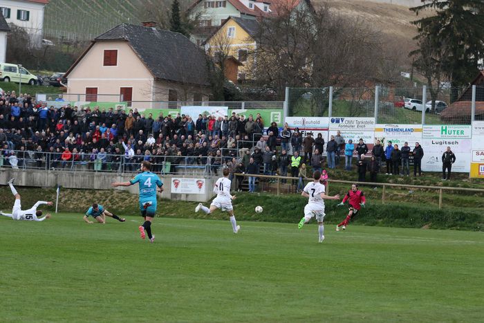 In der 6. Minute hob Raphael Kniewallner ein Zuspiel von Daniel Haas links am Tor vorbei. Zwei Spieler der Gastgeber (Dexer und Balazic) mussten bereits in der ersten halben Stunde mit Verletzungen das Spielfeld verlassen, wobei Marko Balazic mit Verdacht auf Nasenbeinbruch im LKH Feldbach behandelt werden musste.