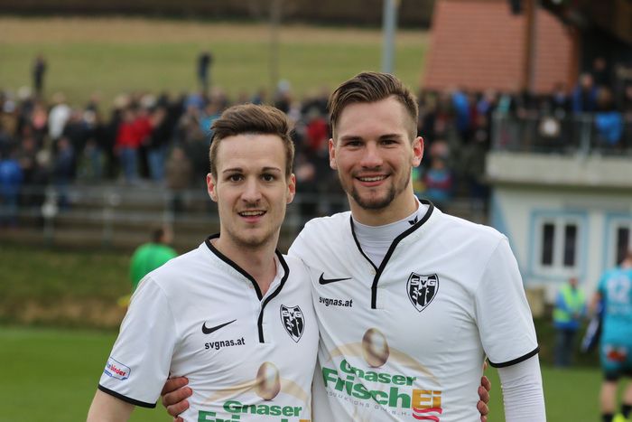 Die Gnaser Torschützen Raphael Kniewallner (links) und Stefan Strohmaier.