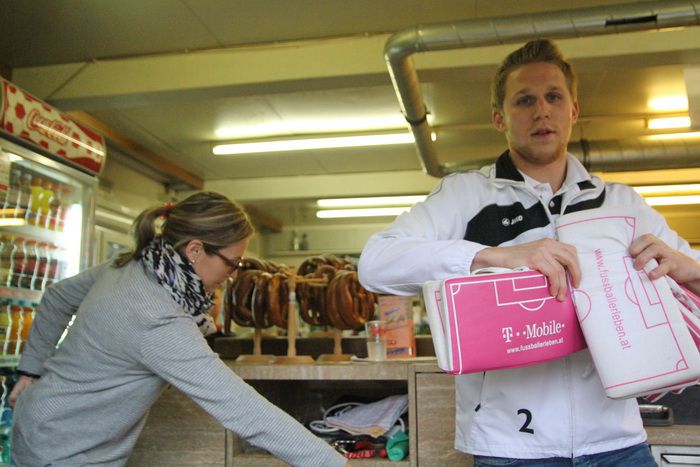 Der noch immer verletzte Gnaser Verteidiger Stefan Klenner arbeitete in der Blechkugel.