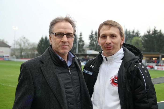 Voitsberg-Trainer Harald Holzer (links) mit Sektionsleiter Heimo Blümel.