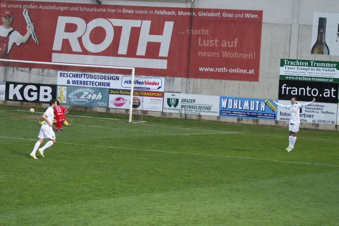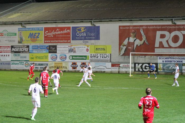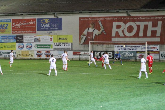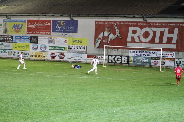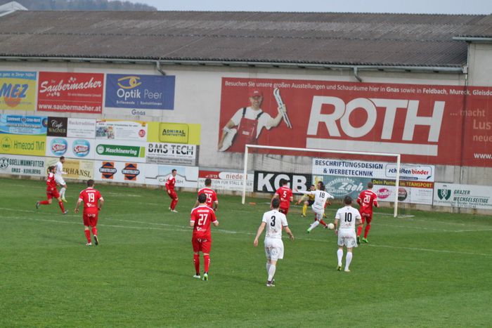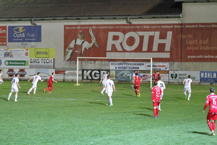 Auf der Gegenseite konnte Gnas-Keeper Roth einen Schuss von Martin Hiden vom Sechzehner halten. Gleich darauf konnte Roth nach dem bereits sechsten Eckball der Gäste einen Brauneis-Schuss aus spitzem Winkel vom linken Fünfereck zum Corner abwehren (25.).