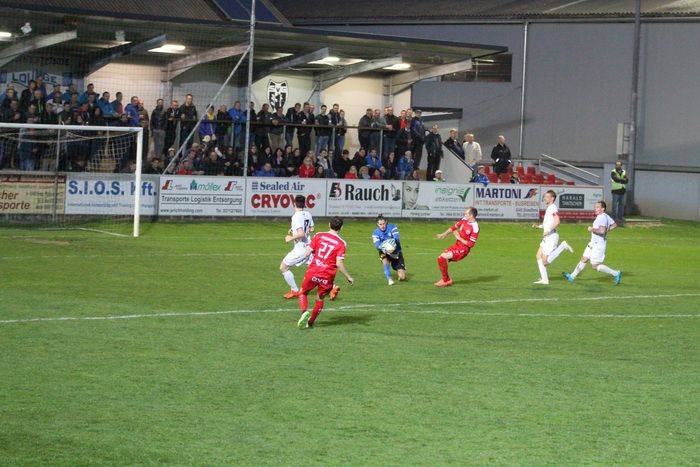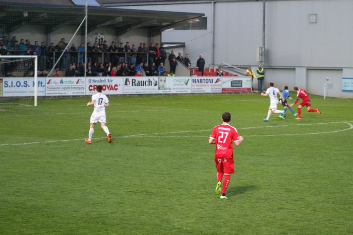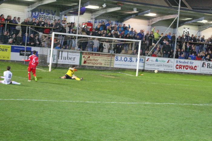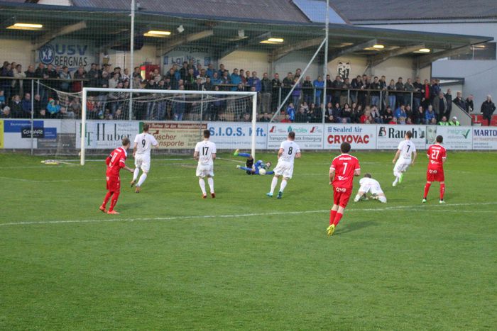 Der Druck der Gäste nahm zu, der Ausgleich hing förmlich in der Luft. Nach einer Flanke von Lukas Starch setzte Stefan Rieger im Lauf einen Kopfball an die rechte Stange, den abspringenden Ball jagte er aus spitzem Winkel am langen Eck vorbei ins Torout (55.). Eine Hereingabe von Jürgen Hiden übernahm Ewald Hutter am Sechzehner, das Leder prallte von der Latte zurück, Roth faustete den Ball vor Brauneis weg. Bald darauf versuchte es Brauneis mit einem Flachschuss von der linken Seite aus, Roth war auf dem Posten (61.).