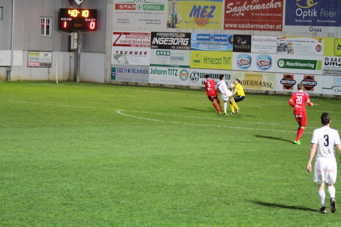 20. Minute: Konter der Gnaser, Raphael Kniewallner schickte Stefan Strohmaier mit einem schönen Pass auf die Reise, dieser ließ sich beim Sprint in Richtung Strafraum von Verfolger Gernot Sauer nicht stoppen und schloss die Aktion aus rund 14 m erfolgreich ab. 1:0 für Gnas.