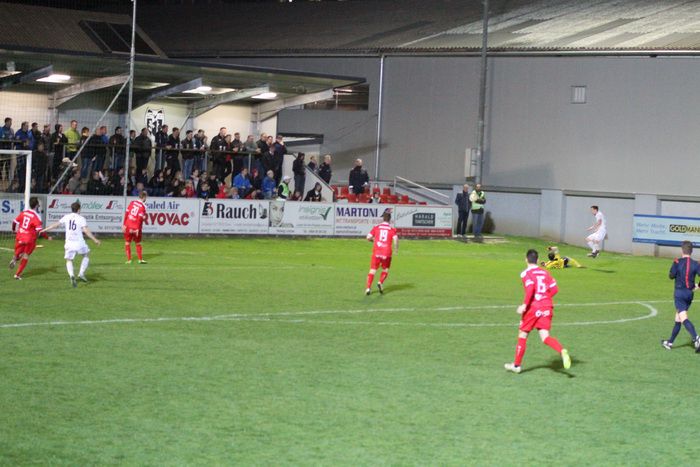 Nach Pass von Kniewallner (nicht am Bild) schießt Stefan Strohmaier zum 1:0 ein...