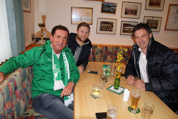 Der frühere Sturm-Torhüter Pepi Schicklgruber (jetzt Wallern-Tormanntrainer) mit Luis Niederl.