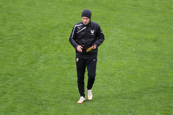 Marijan Blazevic schießt am Tor vorbei (60.).
