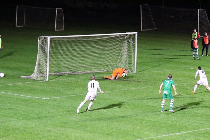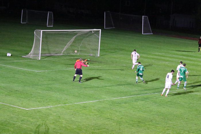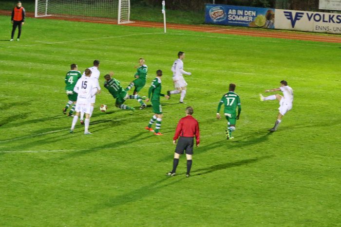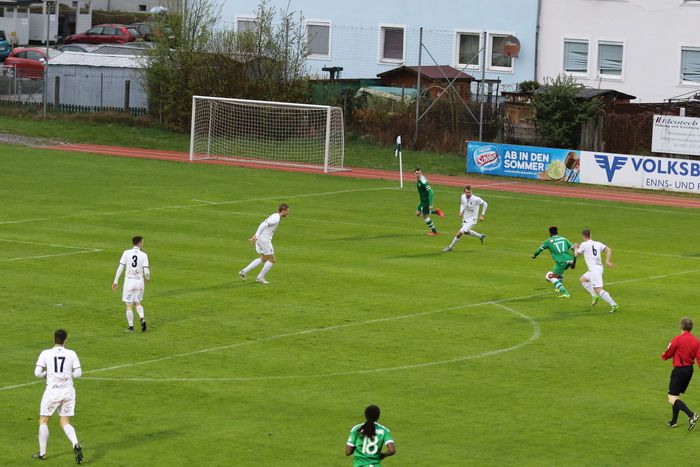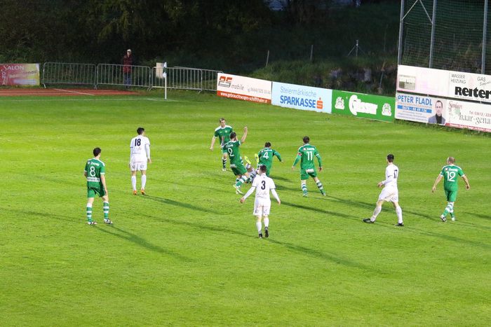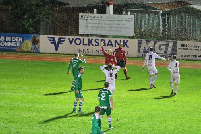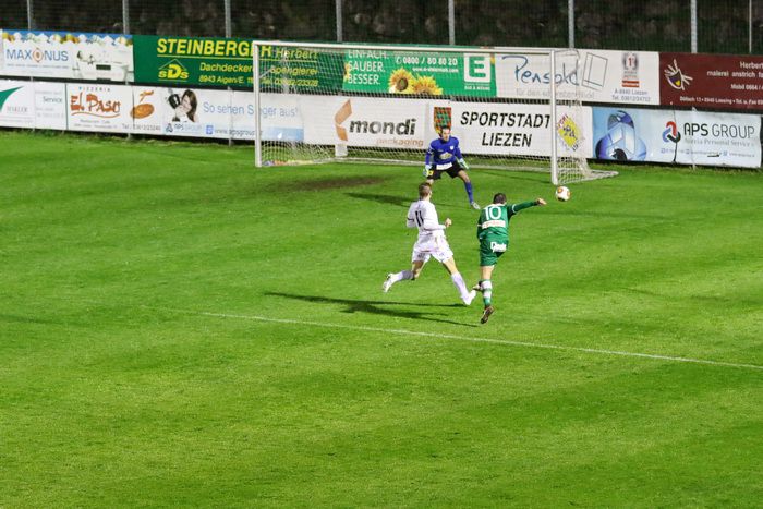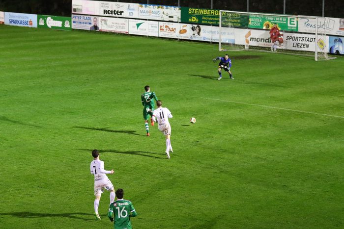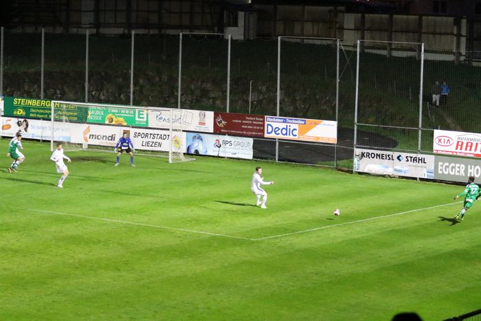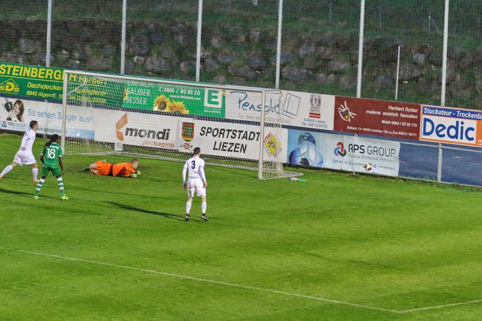 In der 21. Minute wurde Jordan Akande mit einem schönen Steilpass auf halblinks auf die Reise geschickt. Nach einem Hacken legte er quer zu Marijan Blazevic, der in der Folge von Daniel Zimmermann im Strafraum zu Fall gebracht wurde. SR Spörk entschied auf Elfer, obwohl Assistent Komornyik kurz vor dem Foul Abseitsstellung angezeigt hatte. Der Gefoulte selbst übernahm die Verantwortung und versenkte den Strafstoß sicher zum 1:0 (22.). Und die Ennstaler kamen in der Folge zu weiteren Chancen.