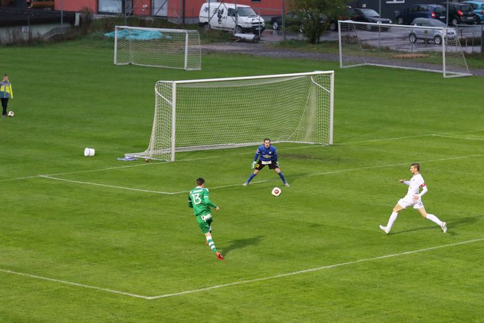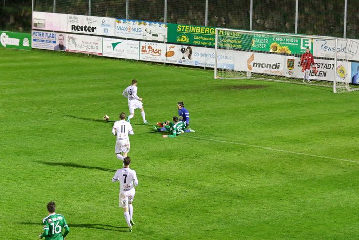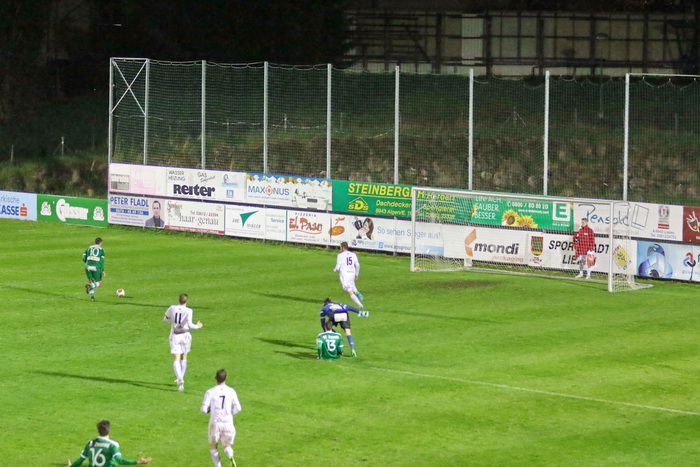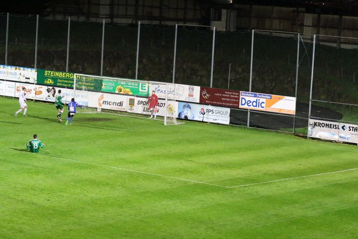 Nach einem Steilpass eilte in der 17. Minute auf der halblinken Seite Nikolas Gruber in Richtung Strafraum, unbedrängt verzog er seinen Schuss aus rund 12 m aber deutlich, der Ball flog rechts am Tor von Roth vorbei ins Torout.