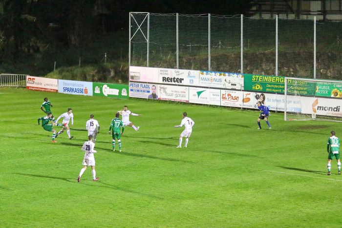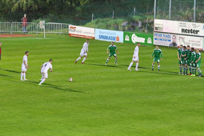 Raphael Kniewallner wird an der Strafraumgrenze von Heinrich Wallner gefoult. Der Freistoß von Wohlmuth wird von einem Gegenspieler zur Ecke befördert (64.).