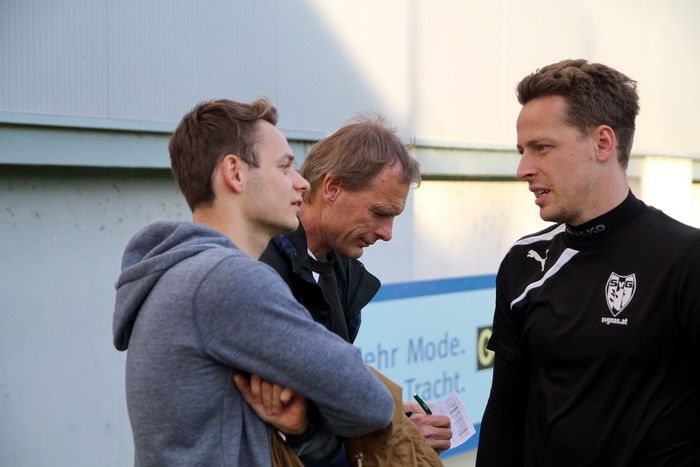 Gnas-Trainer Kovacevic im Gespräch mit dem verletzten Gleisdorf-Spieler Suppan.
