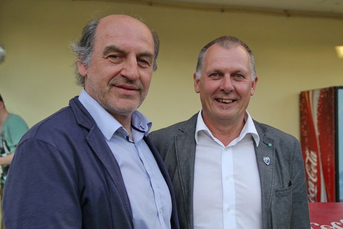 Match- und Matchballsponsor Erich Trummer (links) mit Gnas-Präsident Rudi Schwarz.