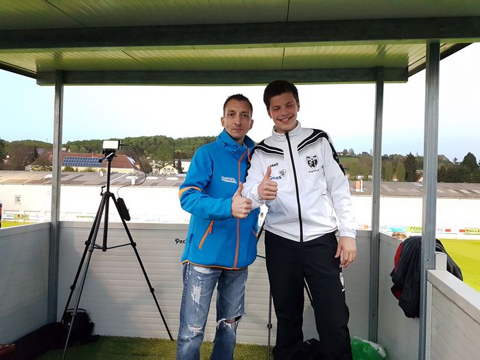 Die beiden Filmer, Holzer (für Ligaportal) und Tappauf (für USV Gnas) auf dem Videoturm.