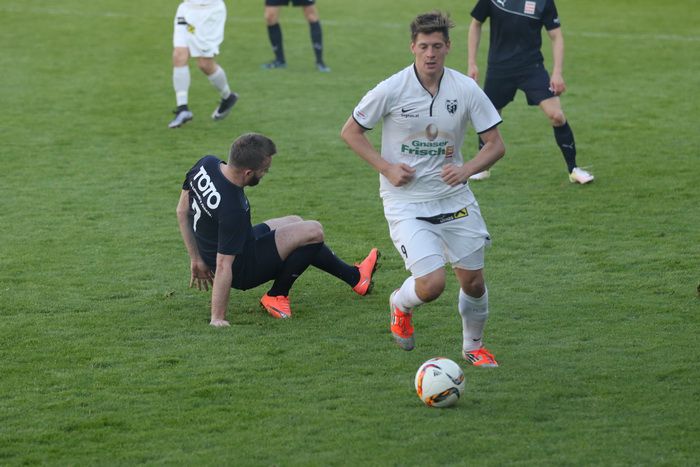 Mittelfeldspieler Matthias Schadler hängt Michael Platzer ab.
