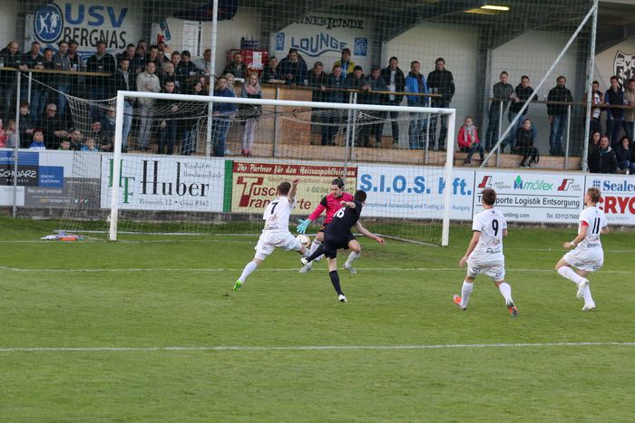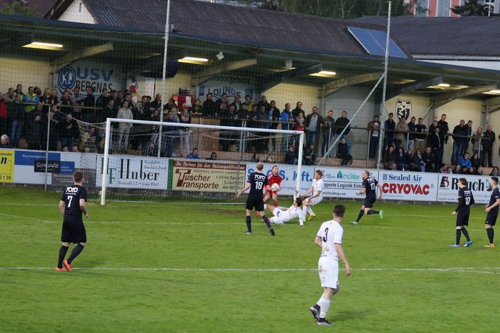 Nach einem Kniewallner-Stanglpass schießt Maximilian Opferkuch (rechts) über die Querlatte (43.). Pausenstand 1:1.