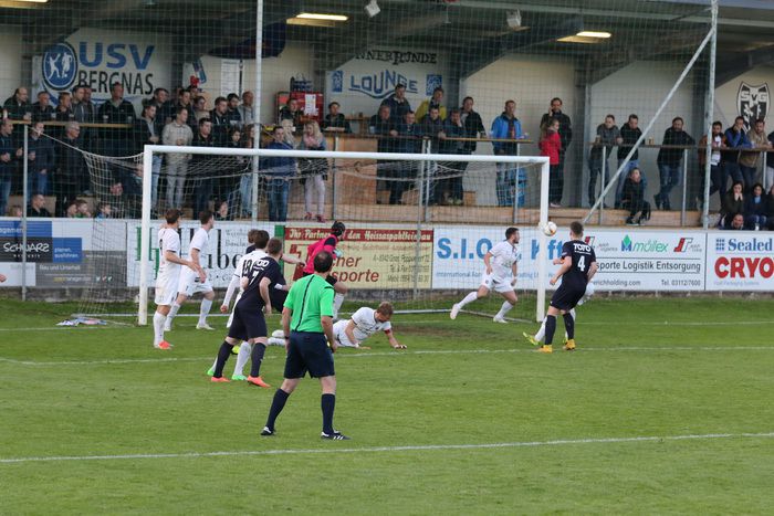 Michael Platzer köpfelt den Eckball in Richtung rechte Ecke...